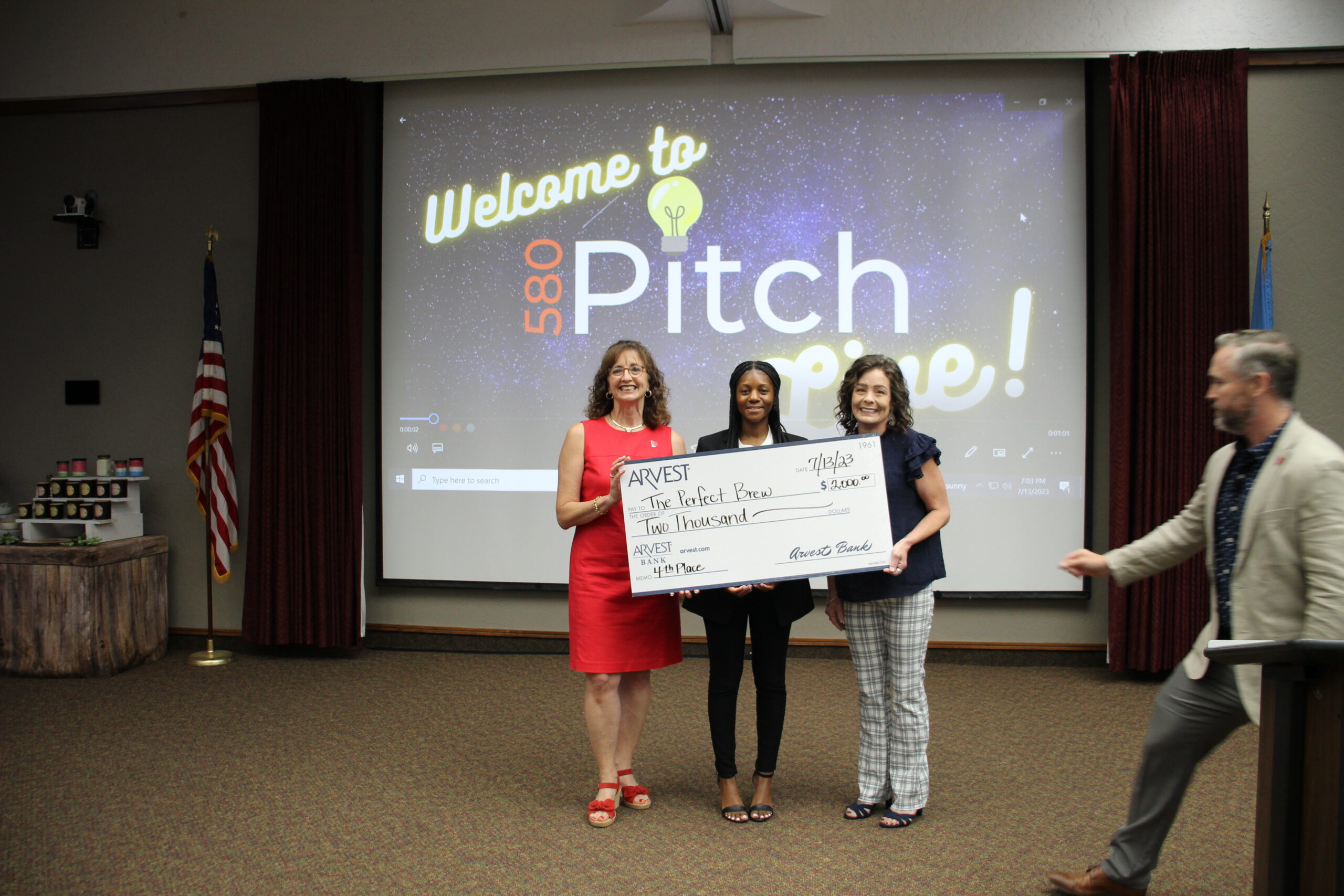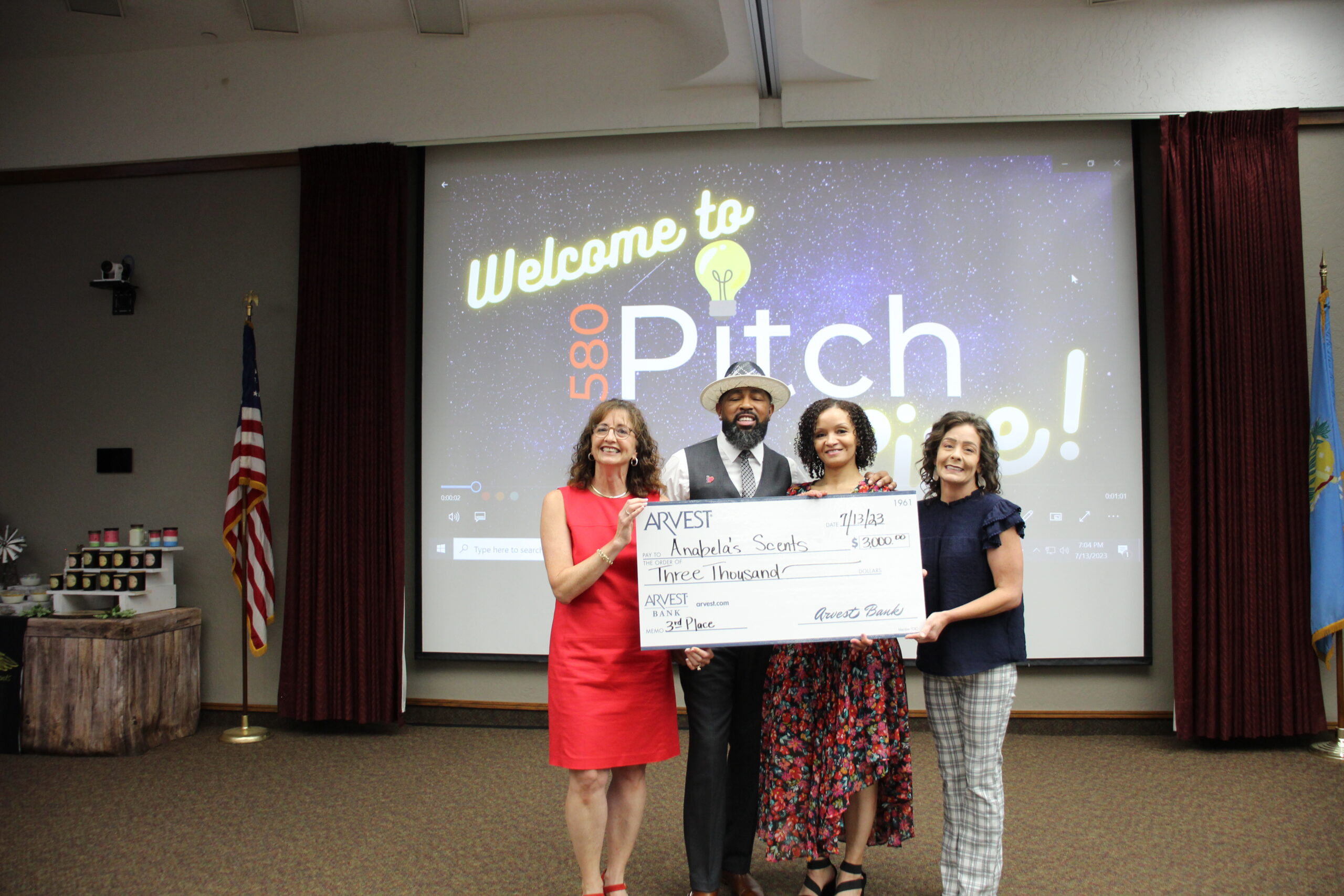 The four finalists of the 580 Competition were The Perfect Brew, Honeycutt Culinary Concepts, Anabela’s Scents and Okie Bin Blasters. Each of the finalists met the pitch competition qualifications, including actively running their business in the Comanche County area. Of the four finalists, Honeycutt Culinary Concepts was selected as the 2023 580 Pitch Competition winner. The winner not only received 10K to support their business operations, but they also received exclusive resources that can help them to scale their business efforts.