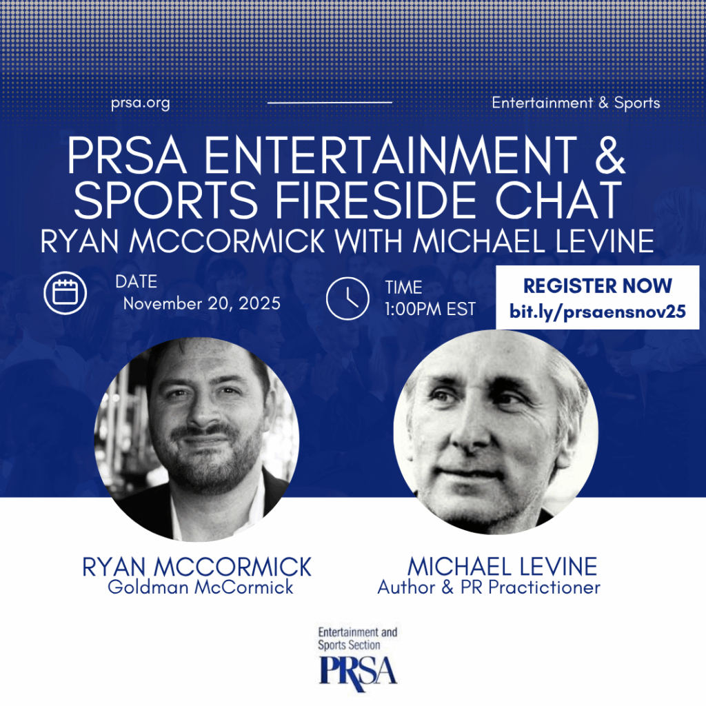 What does it take to build and protect a reputation in the spotlight? The PRSA Entertainment & Sports Section is exploring that very question during our upcoming Fireside Chat on November 20, 2025, at 1 p.m. ET, moderated by my colleague and friend Ryan McCormick, Founder of Goldman McCormick PR.